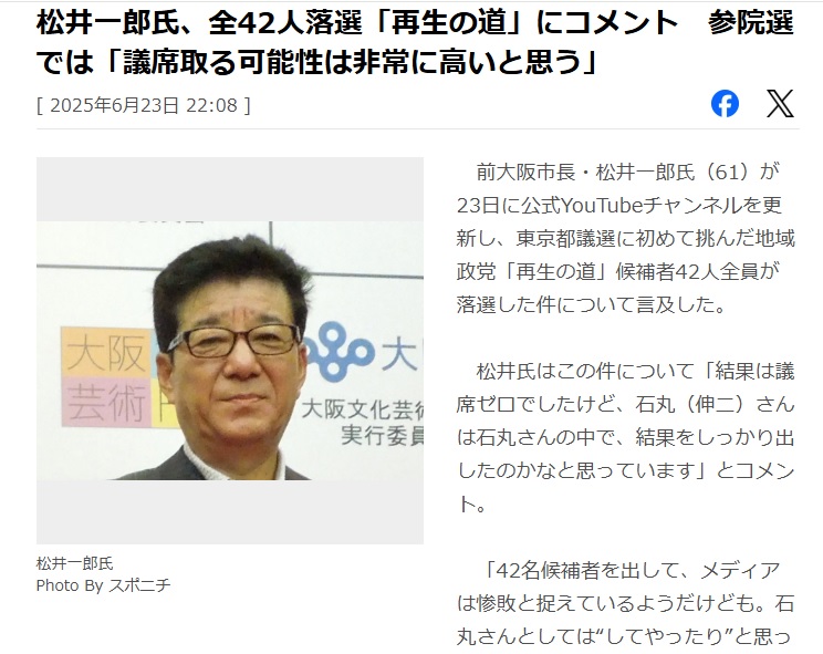 参議院選で議席を取る可能性が高いという予言をした話だぜ。